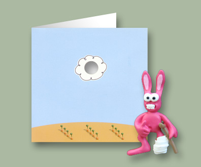 This unique card features a handpainted clay sculpture of a rabbit with an ultra strong magnet and a 3D envelope to hold the special handcrafted greeting card.